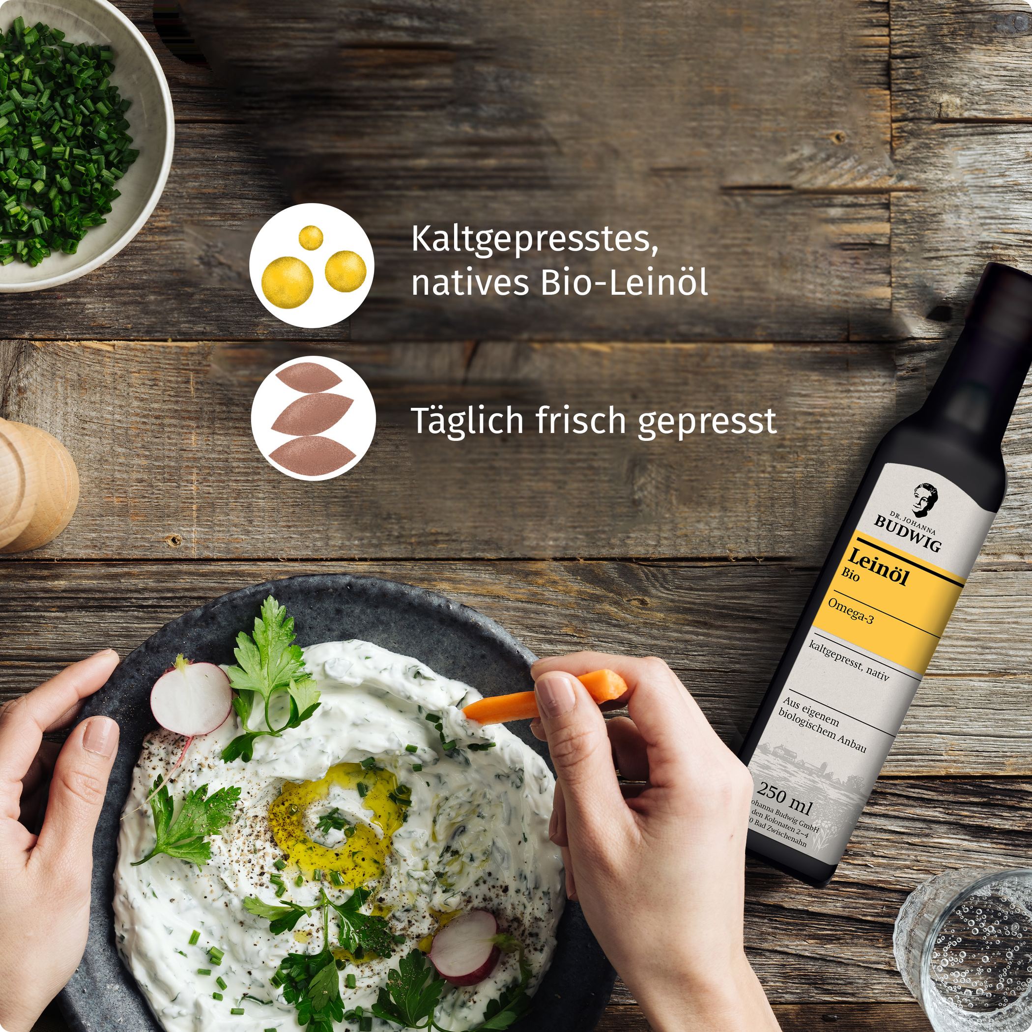 Dr. Budwig Leinöl ist die ideale Zutat für die gesundheitsbewusste kalte Küche. Perfekt für:
