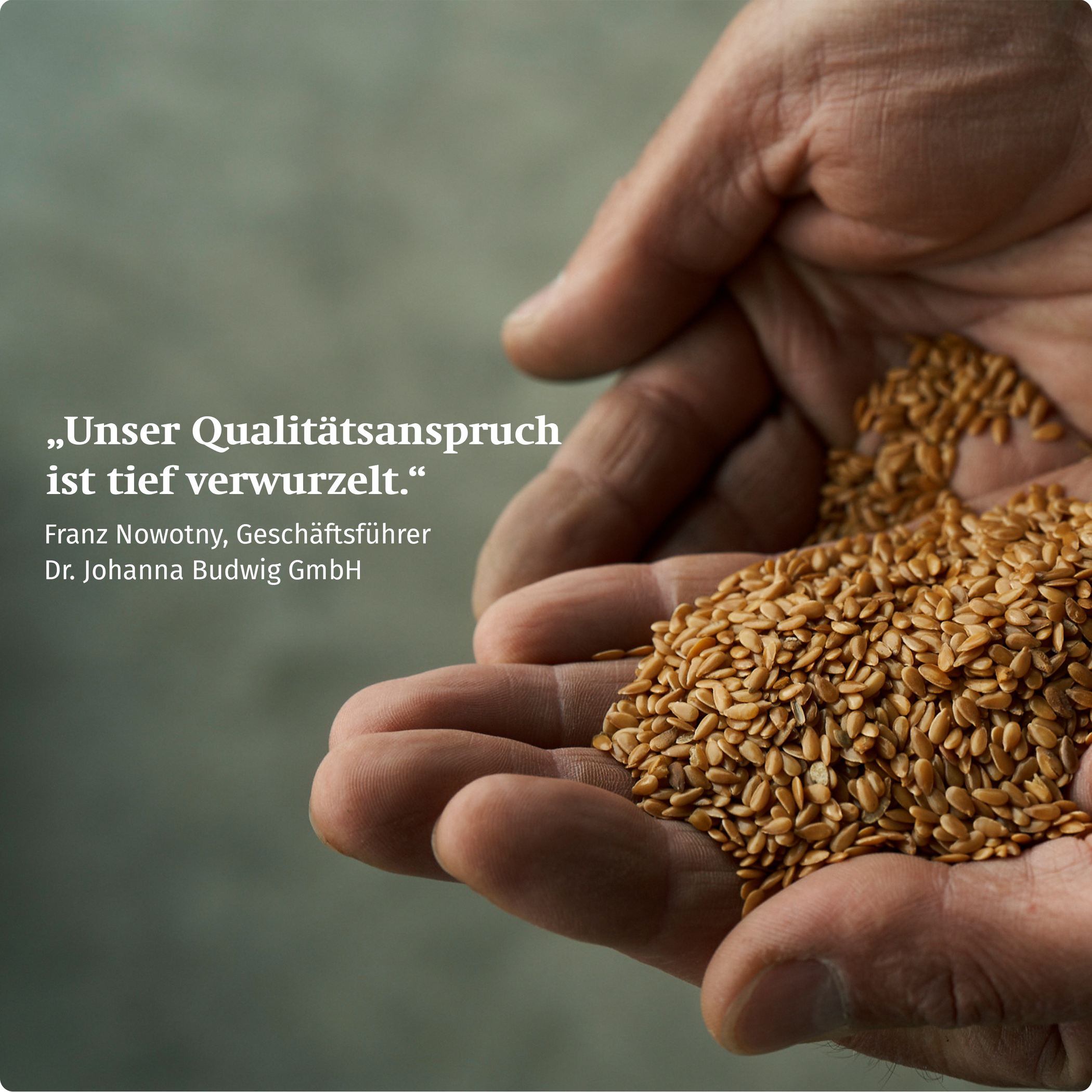 Das Dr. Budwig Leinöl stammt zu 100 % aus eigenem Bio-Anbau. Sorgsam ausgesuchte goldene und braune Leinsamen garantieren ein wirkungsvolles Naturprodukt in einmaliger Qualität.