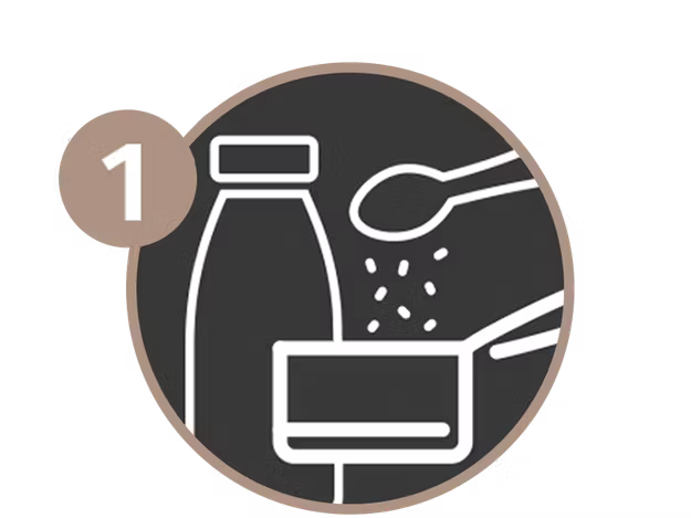 4-5 EL (50gr) Dr. Budwig Porridge in 180ml Pflanzendrink, Milch oder Wasser einrühren.