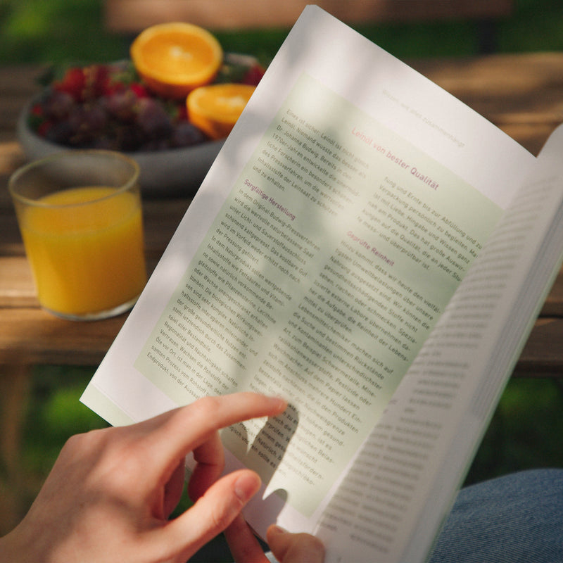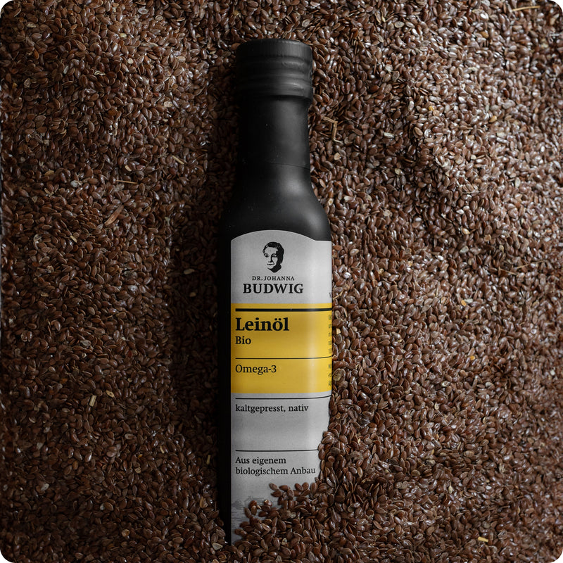 Magerquark empfehlen wir aufgrund des hohen Anteils an schwefelhaltigen Aminosäuren als idealen Bindungspartner für das Leinöl. In anderen Eiweißprodukten wie Joghurt, Skyr, Sojaprodukten oder Vollkornbreien aus etwa Hirse, Hafer, Buchweizen oder Amaranth sind diese Aminosäuren in geringeren Mengen ebenfalls enthalten. Alternativprodukte zur Milch sind zum Beispiel Mandel- oder Haferdrinks.