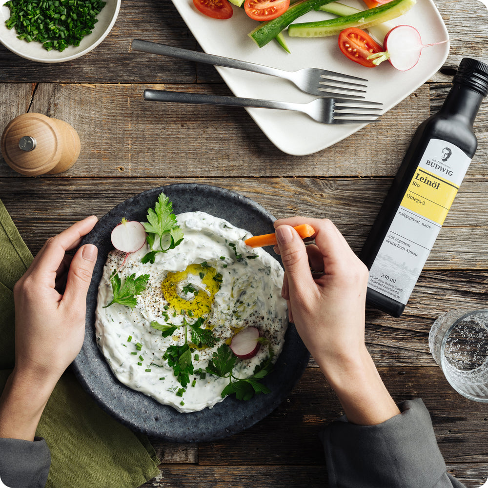 Dr. Budwig Leinöl ist die ideale Zutat für die gesundheitsbewusste kalte Küche. Perfekt für: