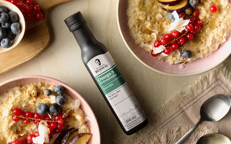 * 20 g (2 EL) Dr. Budwig Omega-3 DHA+EPA versorgt Sie mit 8,2 g ALA, 180 mg DHA und 90 mg EPA. DHA trägt zum Erhalt der normalen Herz- und Hirnfunktion sowie zum Erhalt der normalen Sehkraft bei. Die positive Wirkung stellt sich bei einer täglichen Aufnahme von 250 mg DHA und EPA sowie 2 g ALA ein. Achte auf eine ausgewogene, abwechslungsreiche Ernährung und eine gesunde Lebensweise.