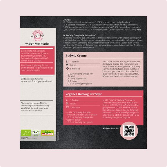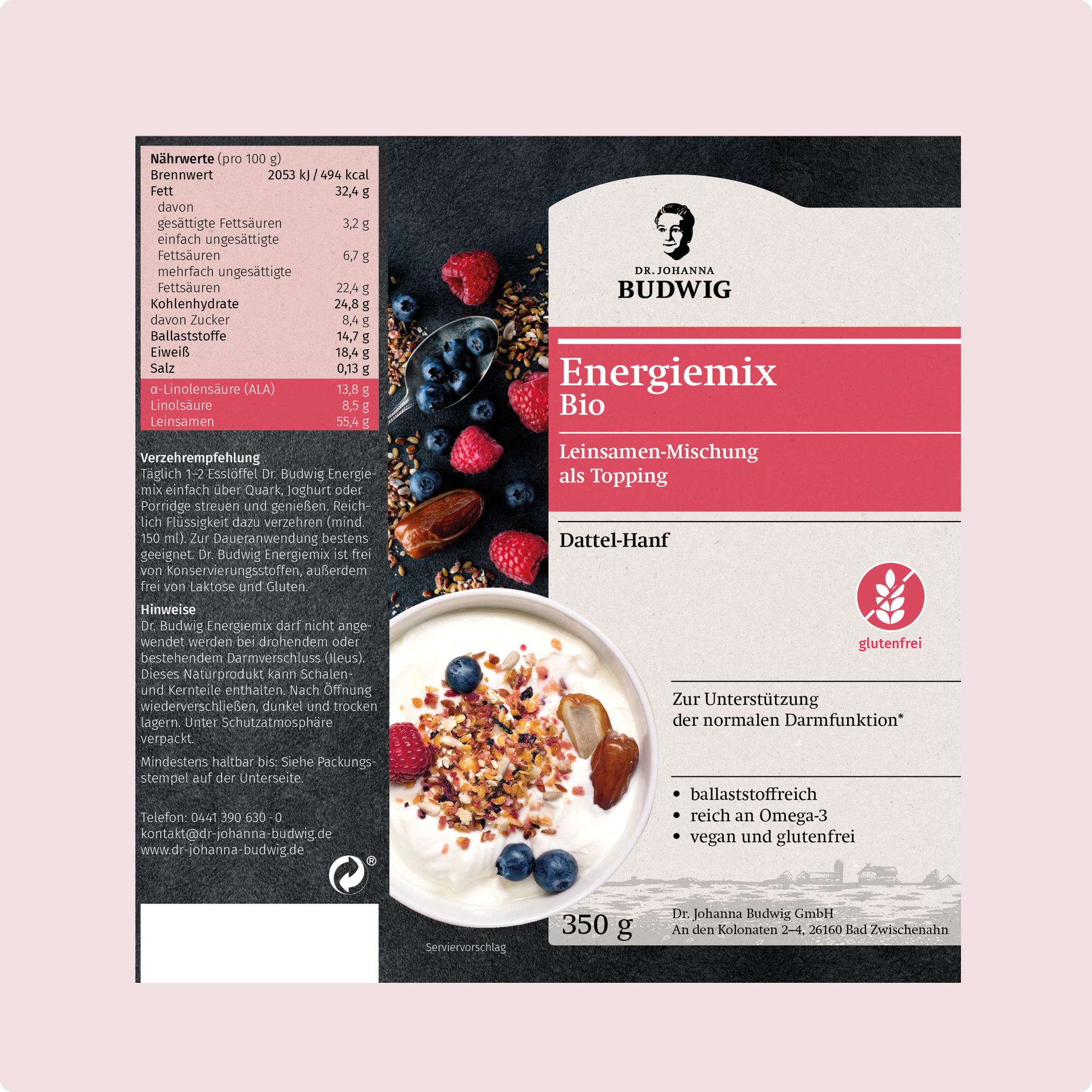 - 1 x Dr. Budwig Linufit Energiemix Dattel-Hanf, 350g