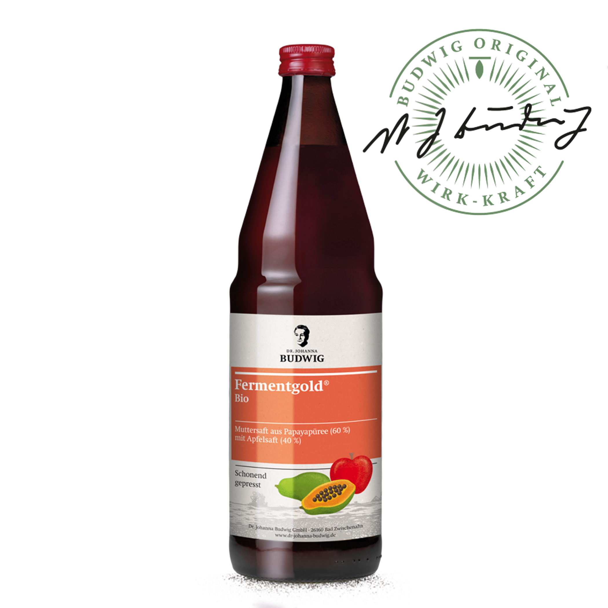 Für Dr. Johanna Budwig waren Muttersäfte ein wichtiger Bestandteil der Budwig Ernährung. Die Rezeptur für Dr. Budwig Fermentgold entwickelte sie bereits im vergangenen Jahrhundert. Basierend auf Erfahrungen, die sie in ihrer Praxis als Heilpraktikerin gesammelt hat, setzte sie Fermentgold auch als Ersatz für frisch gepresste Säfte ein.